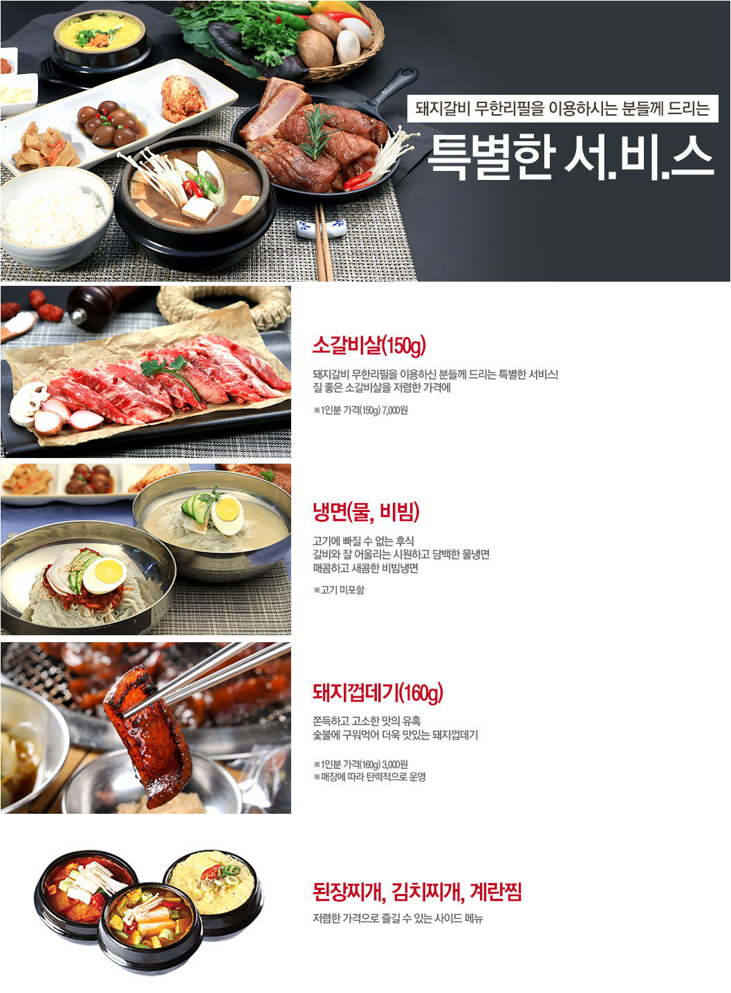 돼지갈비 무한리필을 이용하시는 분들에게 드리는 특별한 서비스