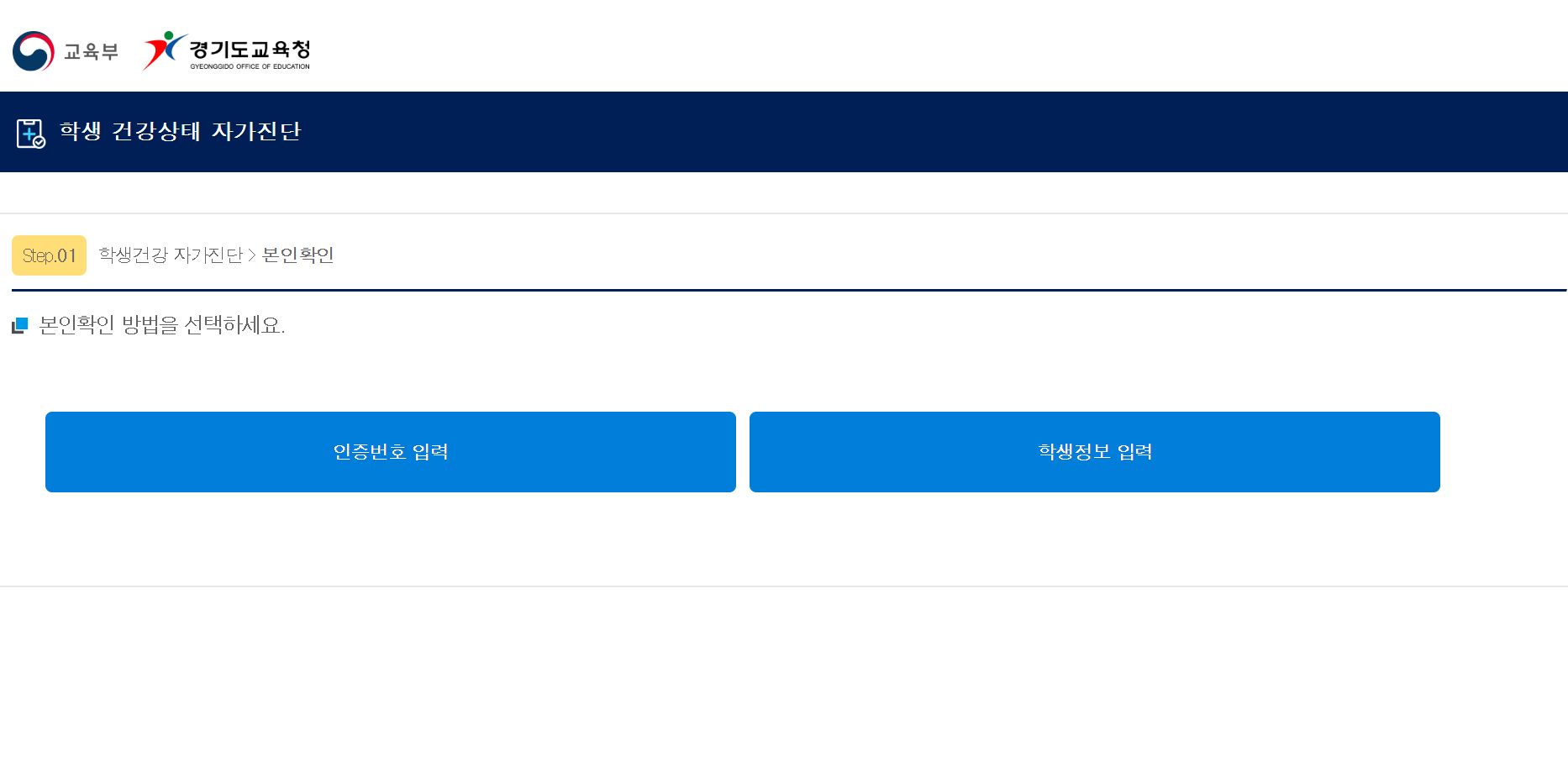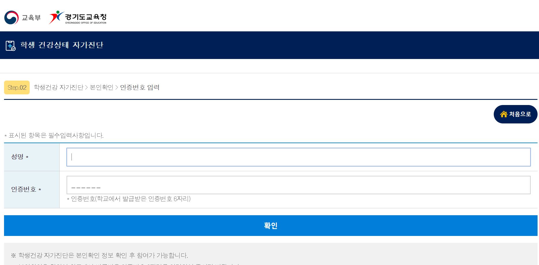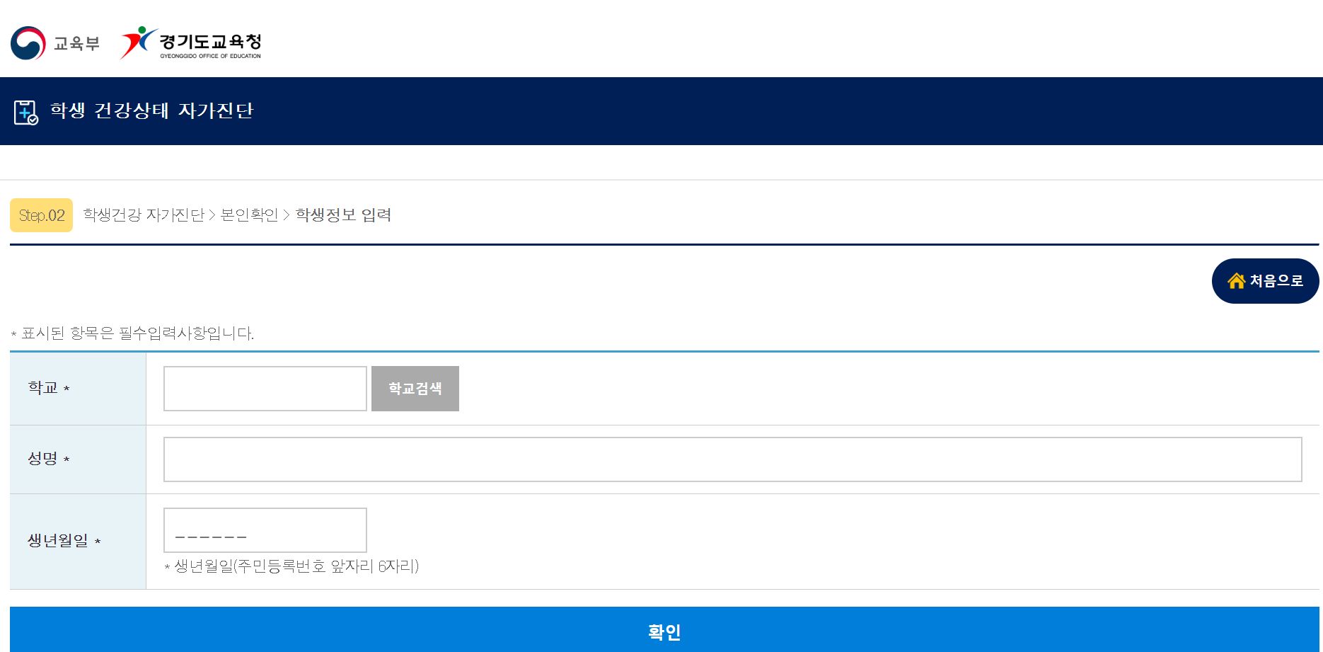 경기도교육청 학생 건강상태 자가진단 페이지 = eduro.goe.go.kr/hcheck/index.jsp