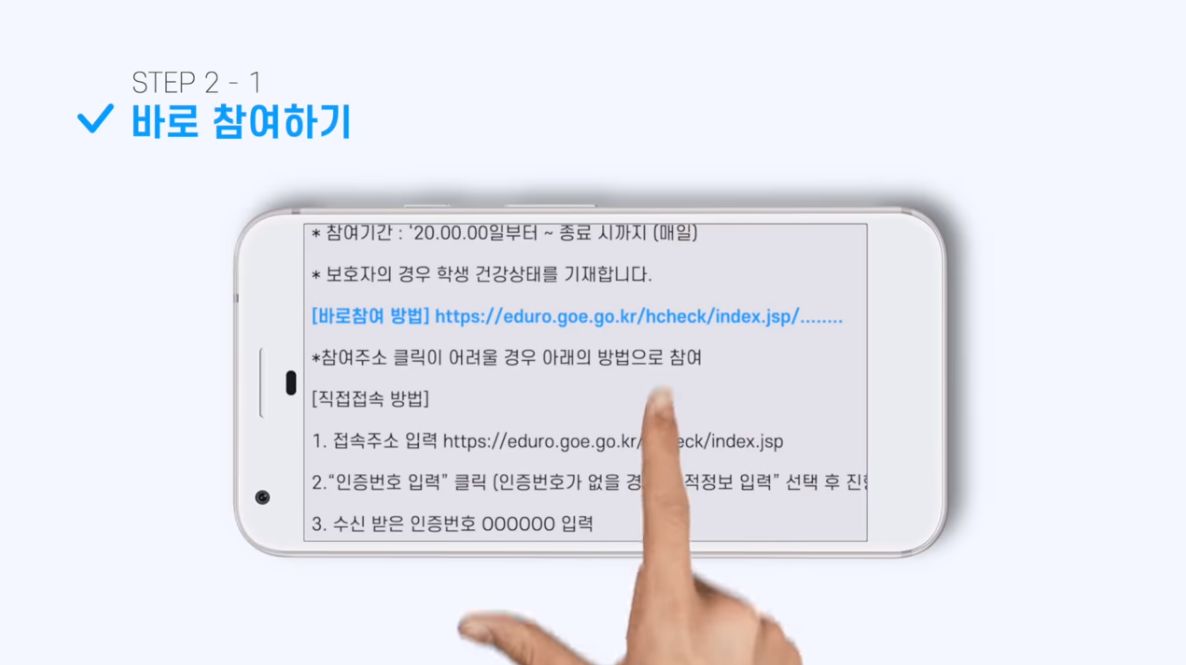 학교로부터 받은 문자메시지에서 바로참여하기를 하면 학생별 별도 페이지로 바로