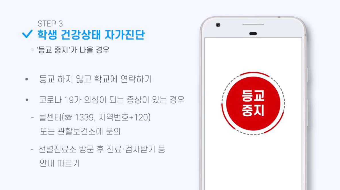 안내드립니다. 학생 건강상태 자가진단은 등교개학 시 학교 내 감염병 확산 방지를 위해 가정에서 코로나19