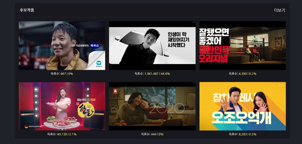 1년동안 많은 분들에게 사랑받은 CF 광고들 후보작품이 올라와 있습니다.