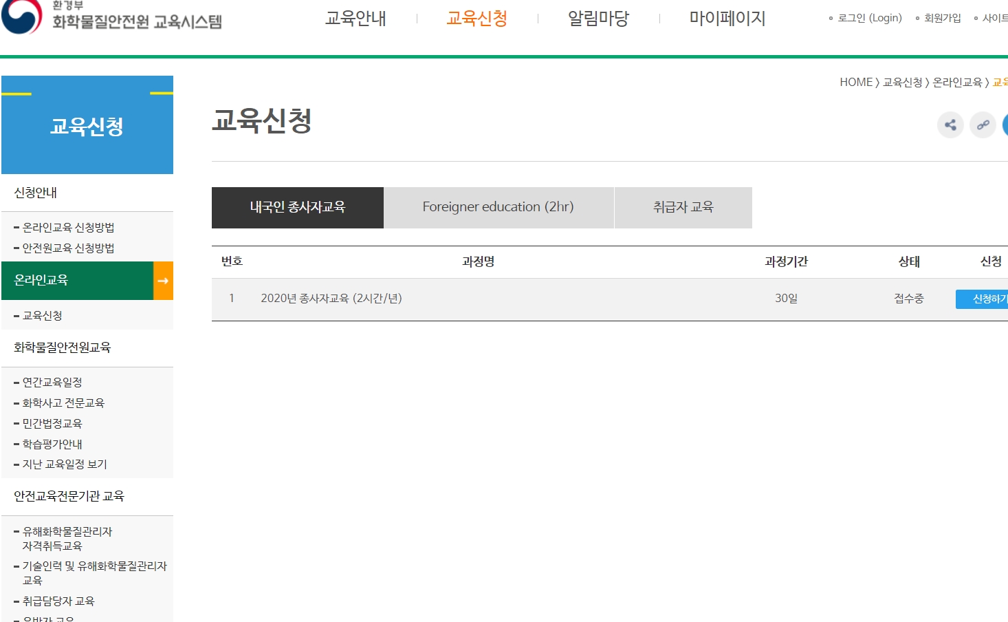 1. 온라인 교육 - 취급자교육, 국내종사자교육, Foreigner education