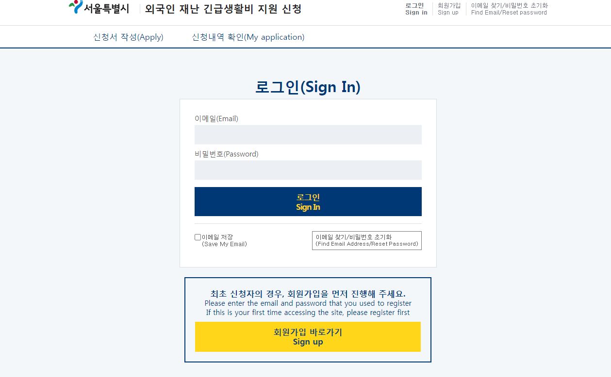 서울시 외국주민 긴급재난지원금 신청 fds.seoul.go.kr