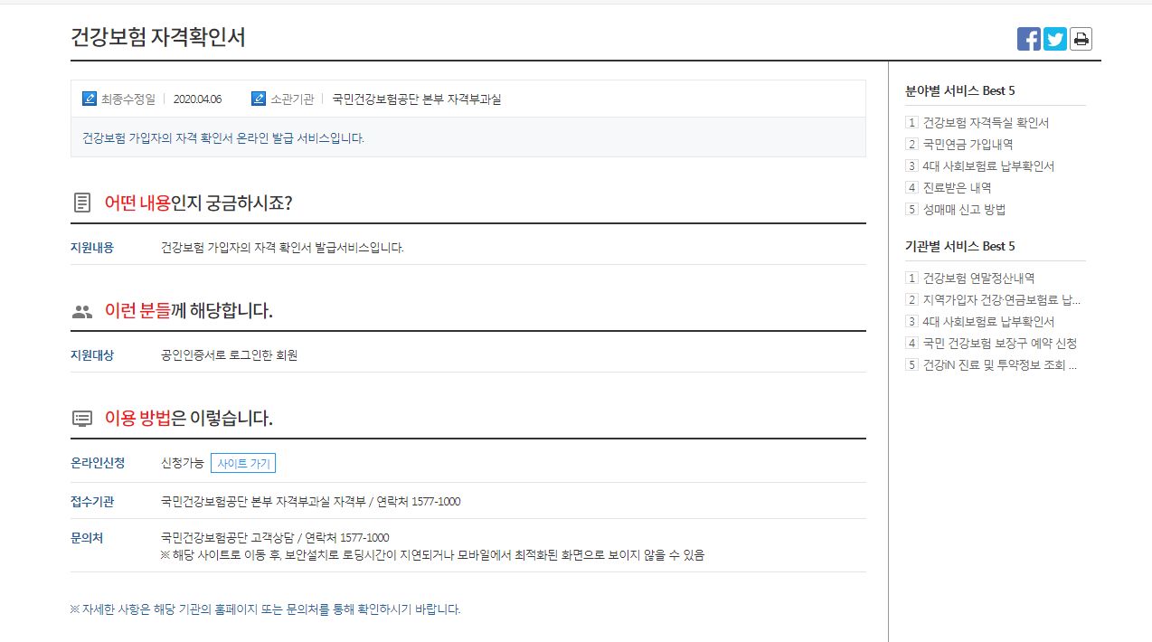 1. 건강보험 자격확인서의 피부양자 확인서 발급 [링크]