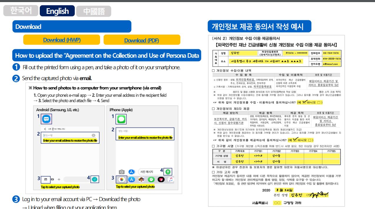 서울시 외국인주민 '재난 긴급생활비' 지원 신청