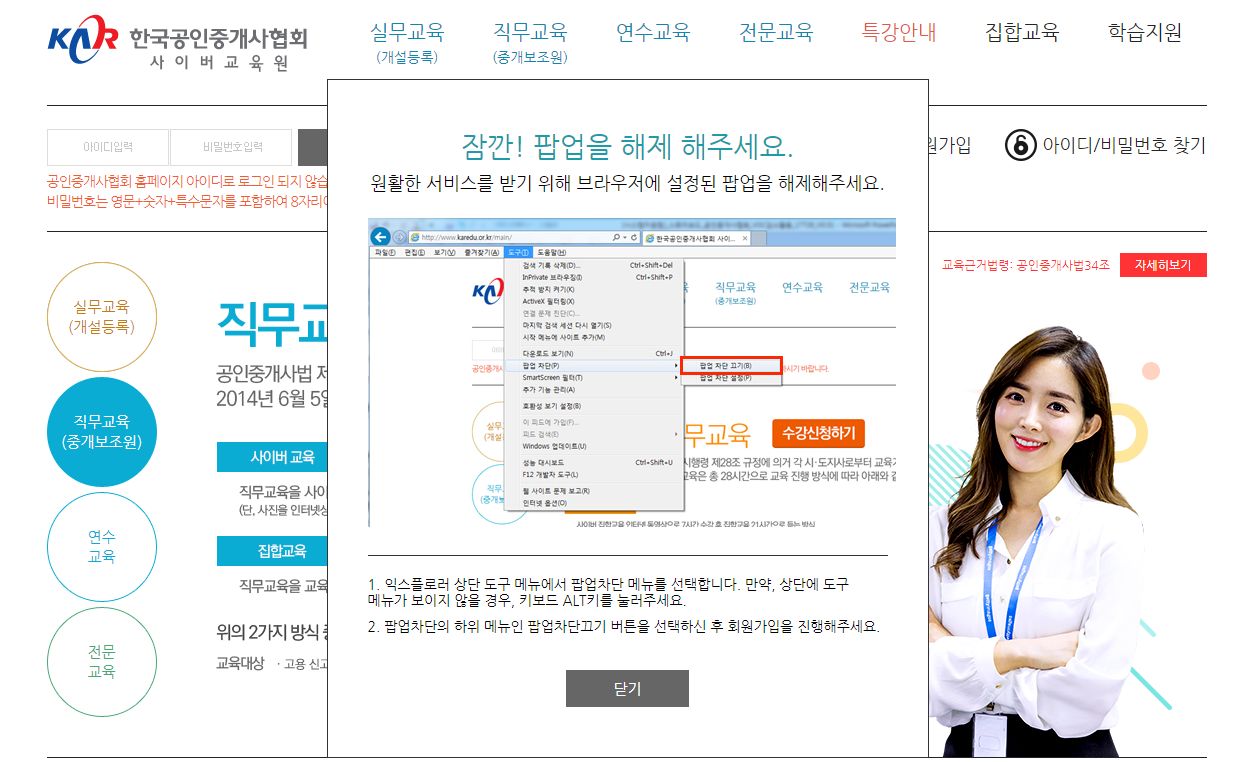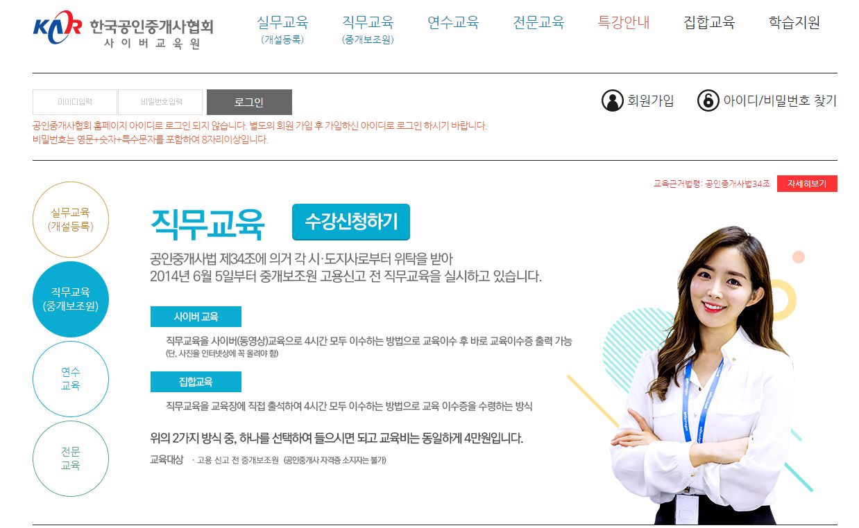 한국공인 중개사 협회 사이버 교육원 홈페이지 입니다.