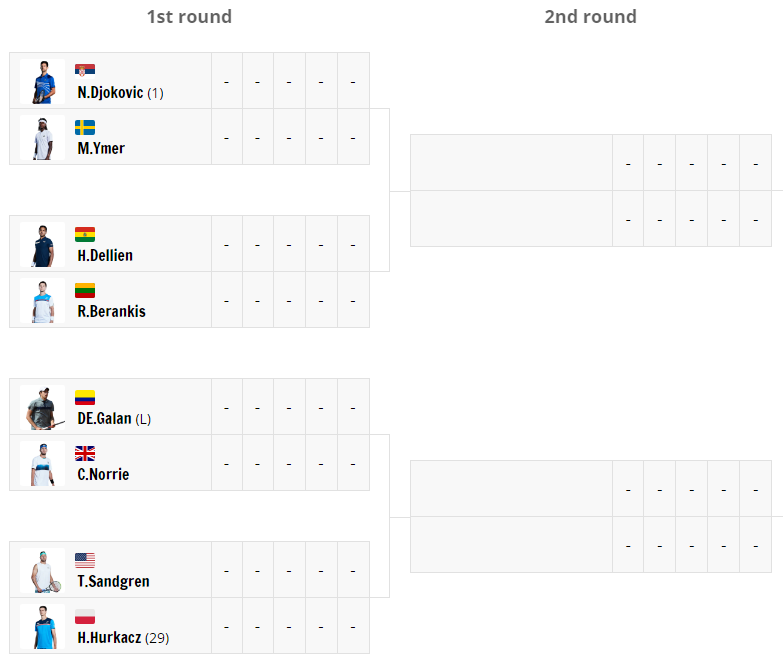 세계랭킹 1위 노박 조코비치는 1회전에서 미카엘 이메르 80위 선수를 만나고