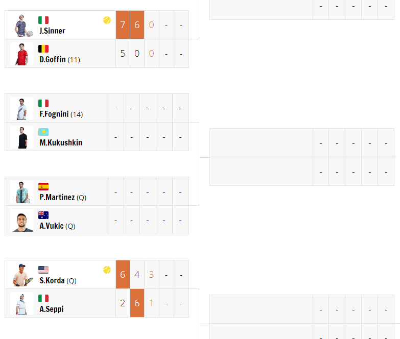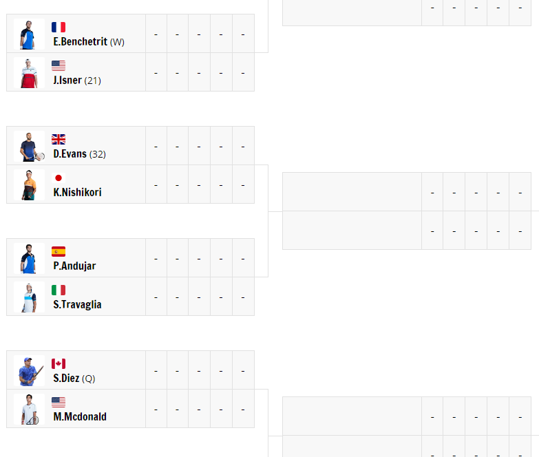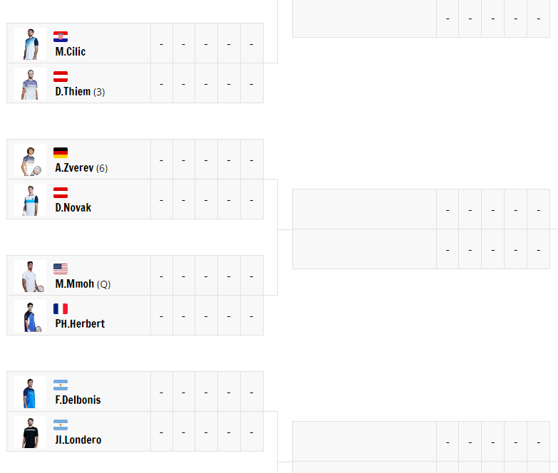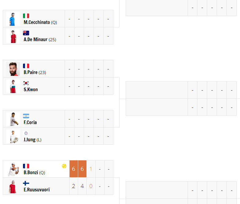 - 프랑스오픈 남자 단식 128강 1회전 대진표 -
