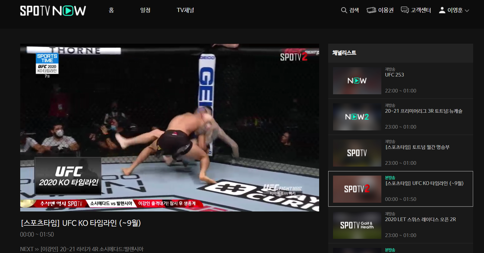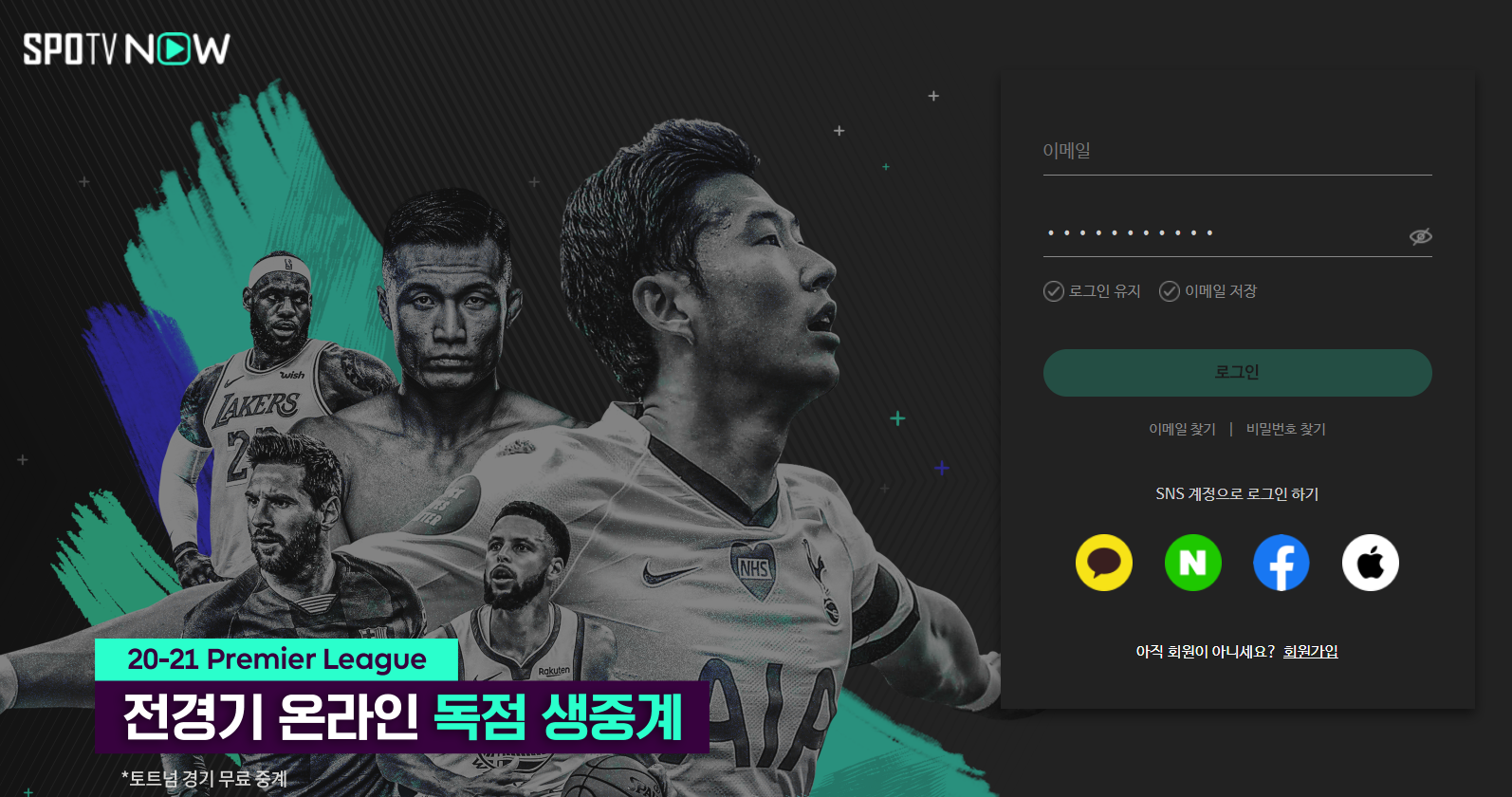 무료 회원가입을 진행하신 뒤 로그인을 해주셔야 합니다. 이전 시즌까지는 네이버에서 스포티비와 이원중계 계약을 했지만 더 이상 진행하고 있지 않아서 인터넷 중계를 시청하시기 위해서는 스포티비나우 홈페이지에서 자체 스트리밍 서비스를 이용하셔야 합니다.
