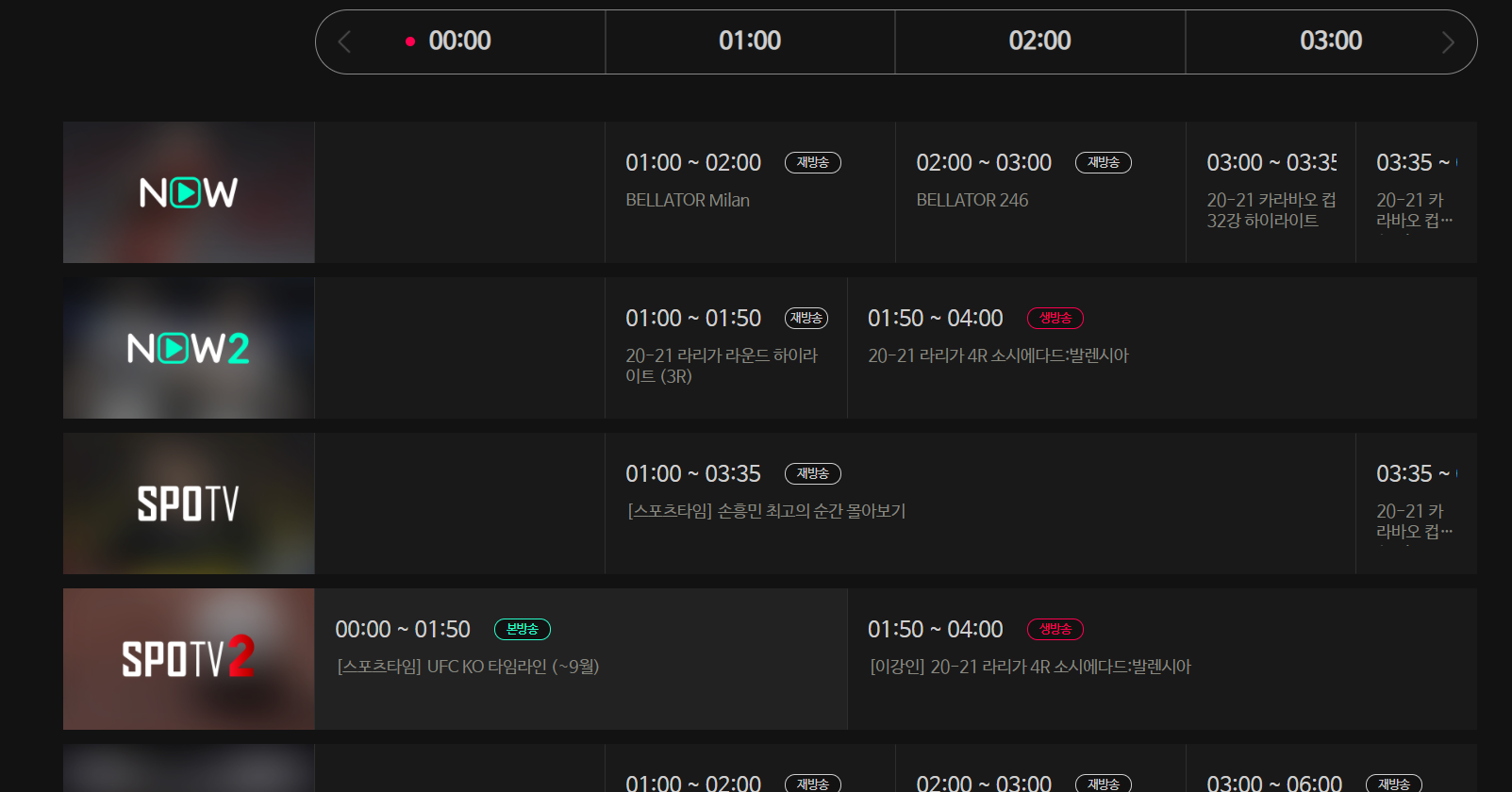 NOW와 NOW2 스포티비 스포티비2 채널과 날짜와 시간대별 중계편성표를 확인할 수 있습니다. 9월 30일 화요일 새벽 2시 부터는 발렌시아가 레알소시에다드와 라리가 4라운드 경기를 진행하는데 스포티비2 채널과 SPOTV NOW2 채널에서 무료로 시청하실 수 있습니다.