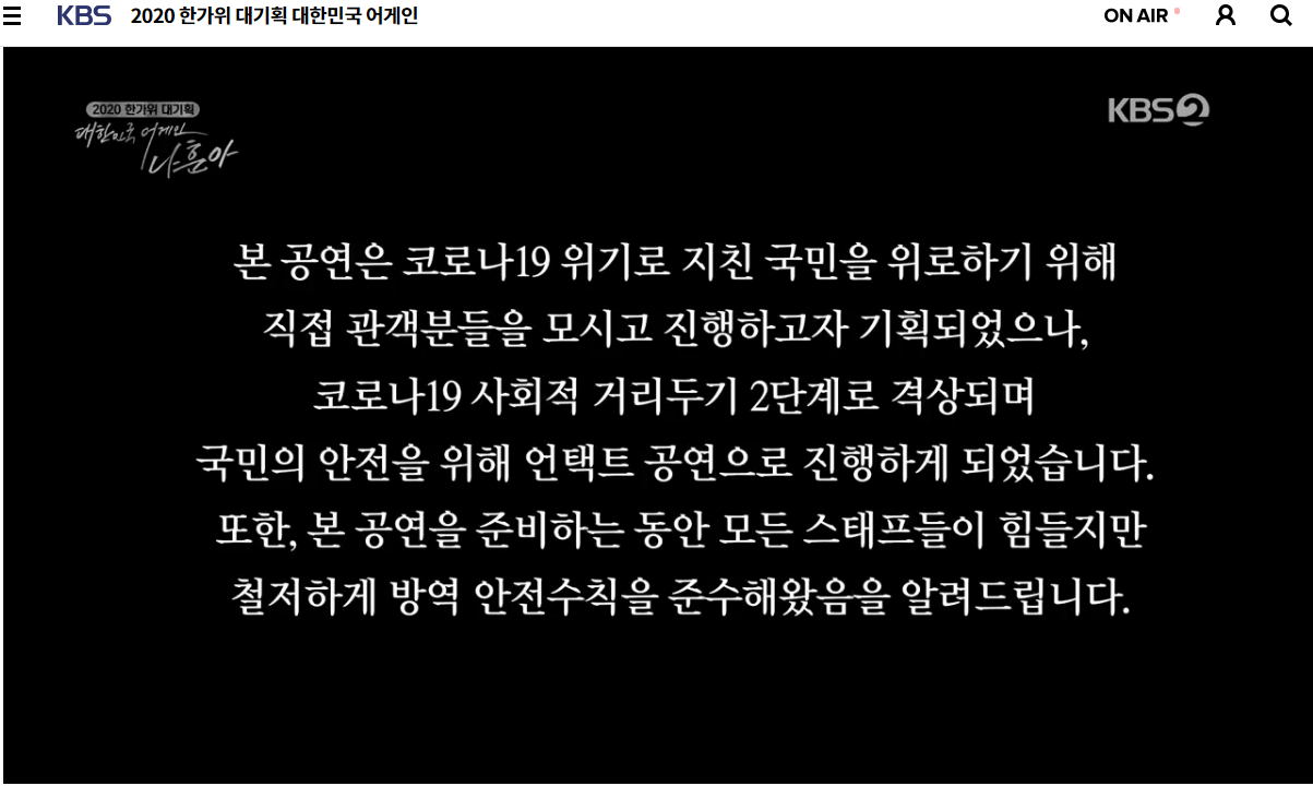 나훈아콘서트 실시간 kbs2온에어 바로가기