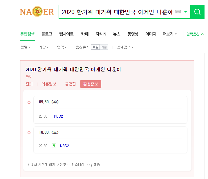 방송은 2020년 9월 30일 저녁 8시 30분 부터 약 2시간 30분 동안 진행됩니다.