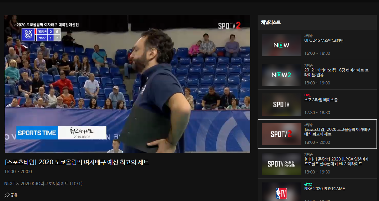 경기 일정, TV 채널에서 스포티비온을 클릭하시면