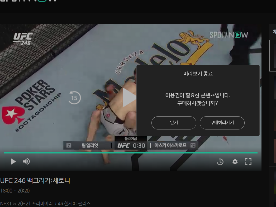모두 이용권을 구매해야 시청할 수 있는 유료중계로 편성되어 있습니다.