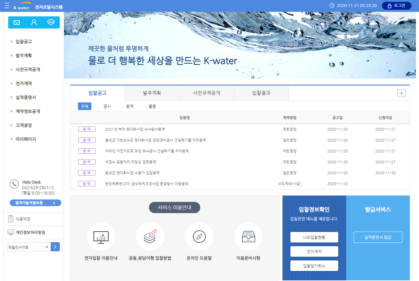 입찰공고 / 발주계획 / 사전규격공개 / 입찰결과 / 전자계약 / 실적증명서 / 계약정보공개