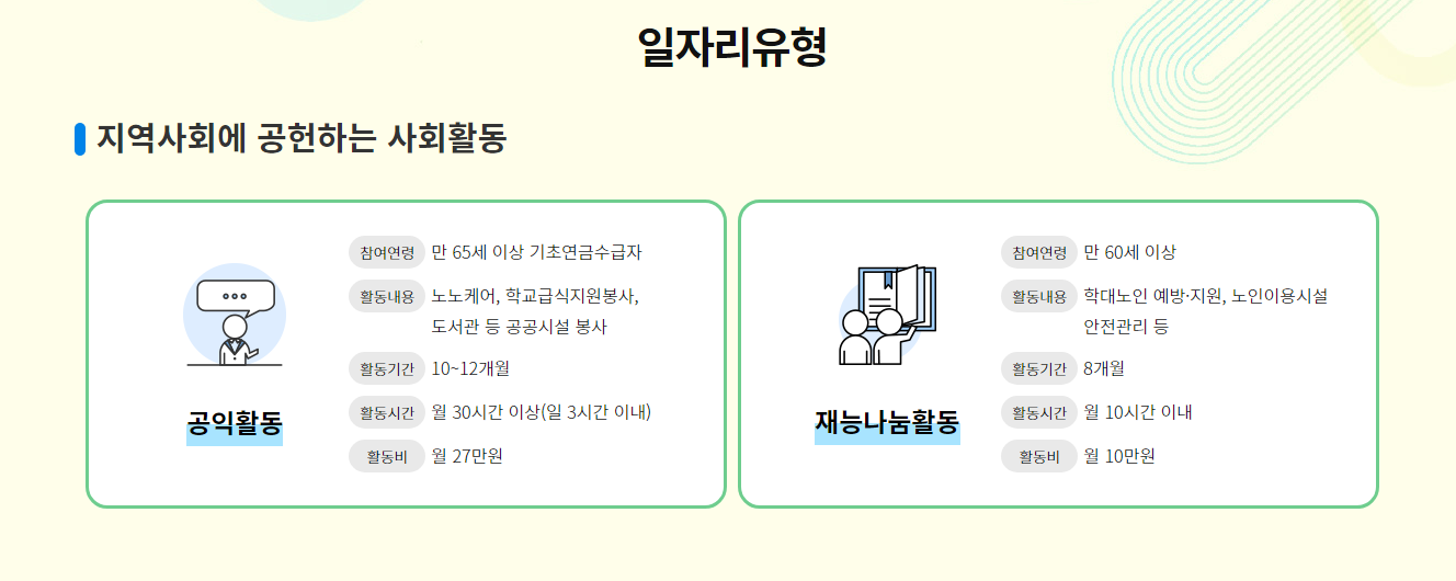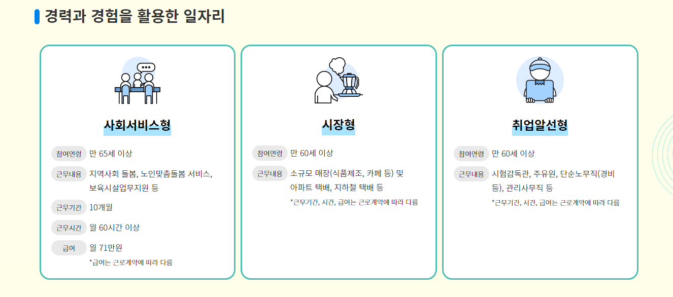 경력과 경험을 활용한 일자리 - 사회서비스형, 시장형, 취업알선형