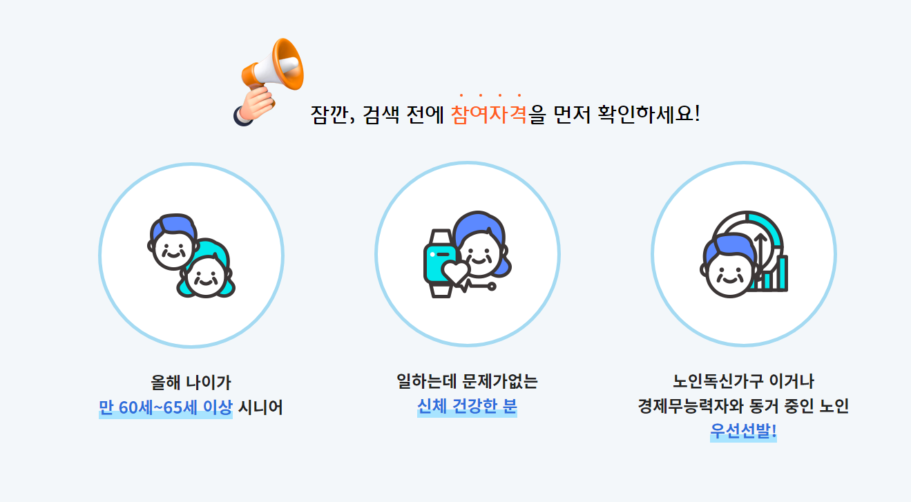 국가에서 2021년 노인일자리 사업 지원자를 모집합니다. 지원자격을 보시고 거주하시는 지역별로 선발인원과 사업을 살펴보시고 신청하시기 바랍니다.
