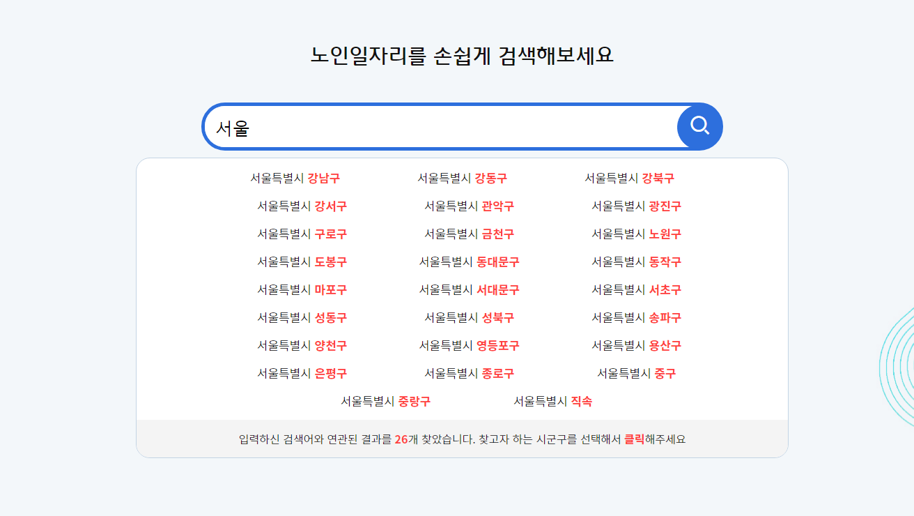 거주하시는, 일자지지원사업을 참여하고 싶은 지역을 검색하세요.