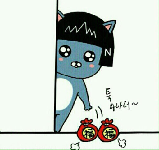 카카오 프랜즈 네오의 복 짤의 시작. 귀엽게 소심하게 복 하나 툭 던져놓고 가는 이 짤의 변형들이 엄청나게 많음.