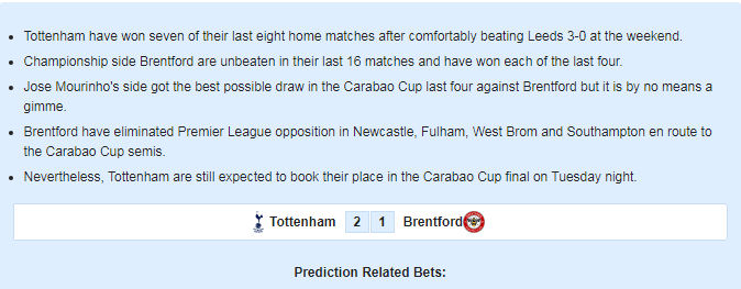 토트넘은 탕강가, 로셀소, 베일이 부상으로 결장하고, 브렌트포드는 밥티스테, 뇌르가드, 라스무센이 부상으로 출전할 수 없습니다.