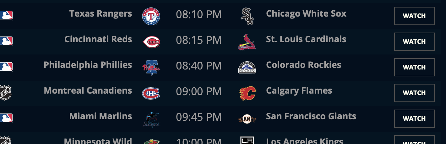 메이저리그 30개 구단의 모든 경기가 경기 시간에 맞춰 실시간 송출됩니다.