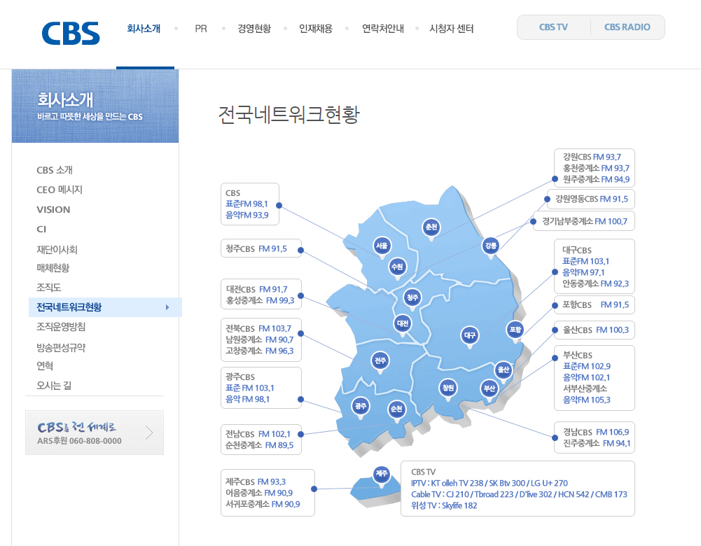 그리고 지역별로 CBS 라디오 주파수 FM은 아래 이미지를 참고하시기 바랍니다.
