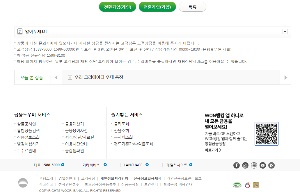 기존에 우리은행 통장을 가지고 있는 분들만 이 상품으로 전환가입만 가능하고 신규가입은 현재 불가능합니다.