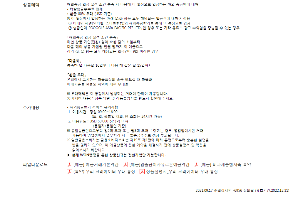 우리 크리에이터 통장 상품 설명서 PDF