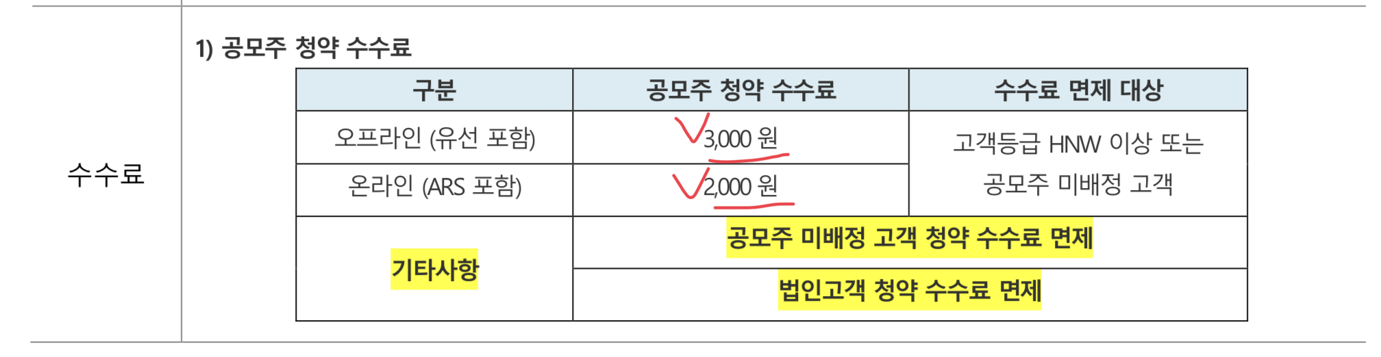 단, 공모주 미배정 고객은 청약수수료가 면제되고, 법인고객 역시 청약수수료가 면제입니다.