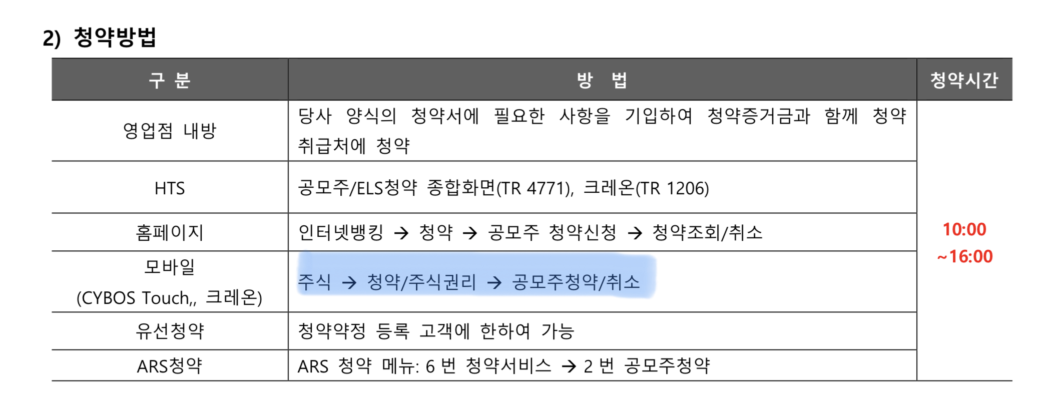 영업점 내방 : 대신증권 양식의 청약서에 필요한 사항을 기입하여 청약증거금과 함께 청약 취급처에 청약