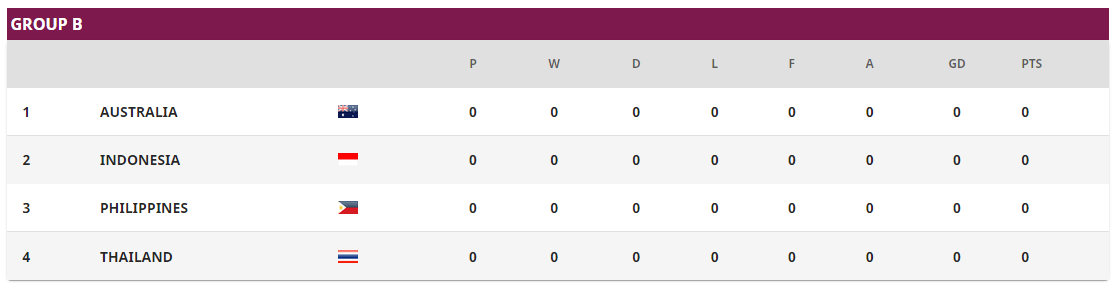 B조 - 호주, 인도네시아, 필리핀, 태국