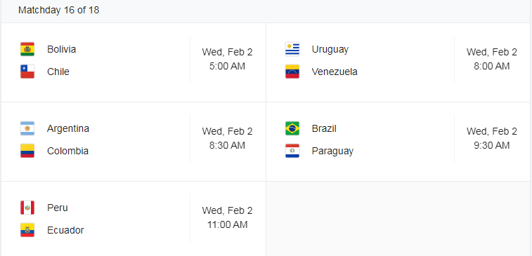 한국시간 2월 2일 수요일 펼쳐지는 경기로는 오전 8시 30분 아르헨티나와 콜롬비아의 경기와 오전 11시 페루와 에콰도르의 경기가 기대되는 매치 입니다.