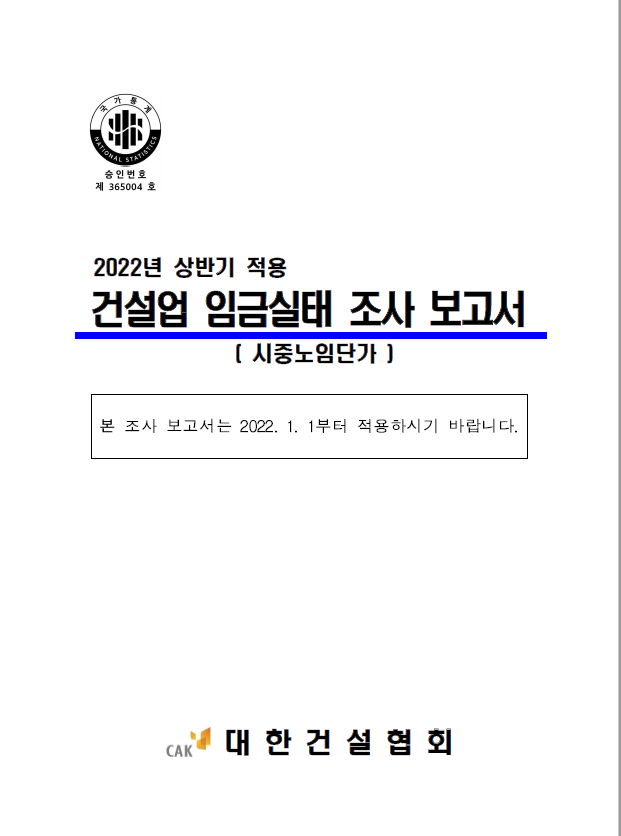 대한건설협회에서 발췌한 2022년 상반기 건설업 임금실태 조사 보고서 입니다.