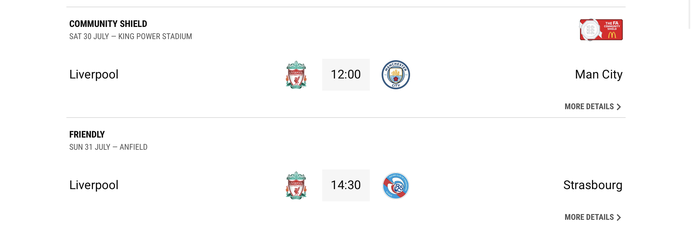 그리고마지막 프리시즌 일저으로 스트라스부르크와 안필드 홈경기를 갖습니다.