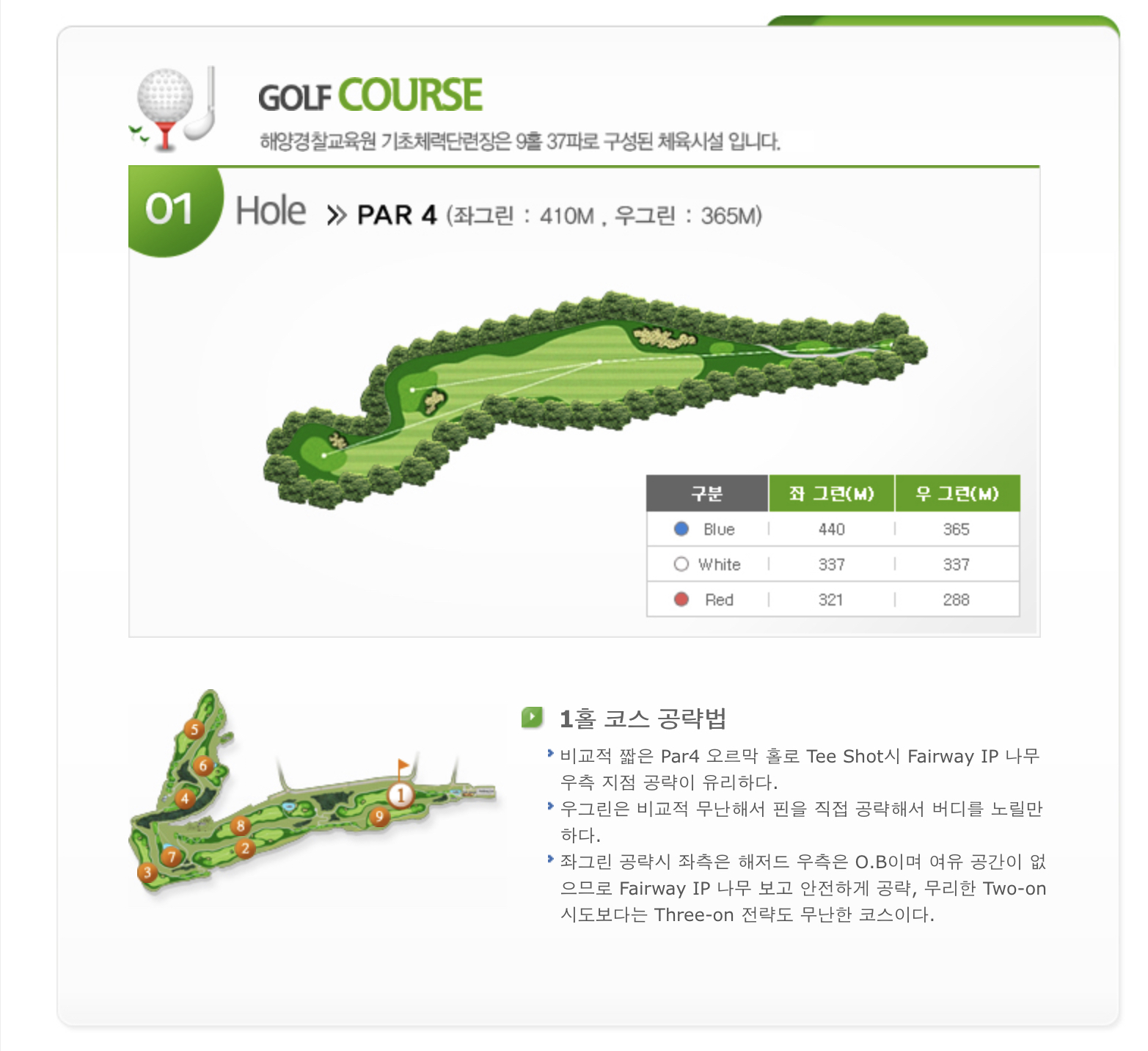 해양경찰교육원 골프장 기초체력단련장 홈페이지