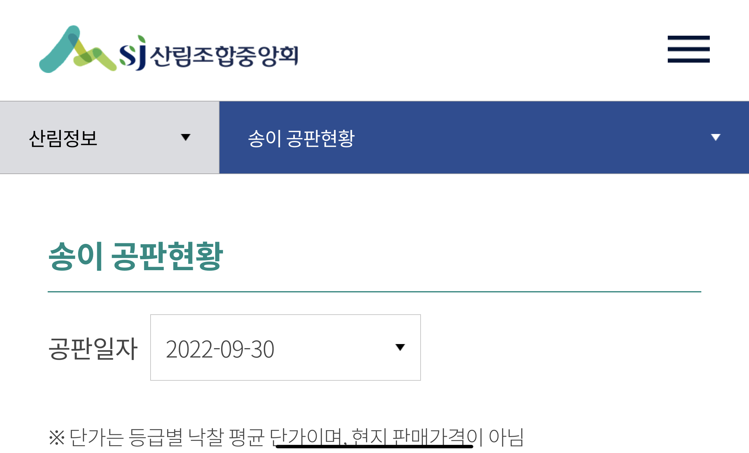 산림조합중앙회 송이공판현황 게시판을 통해서 매일 전국 송이버섯 산지에서 올라오는 공판 가격을 확인하실 수 있습니다.