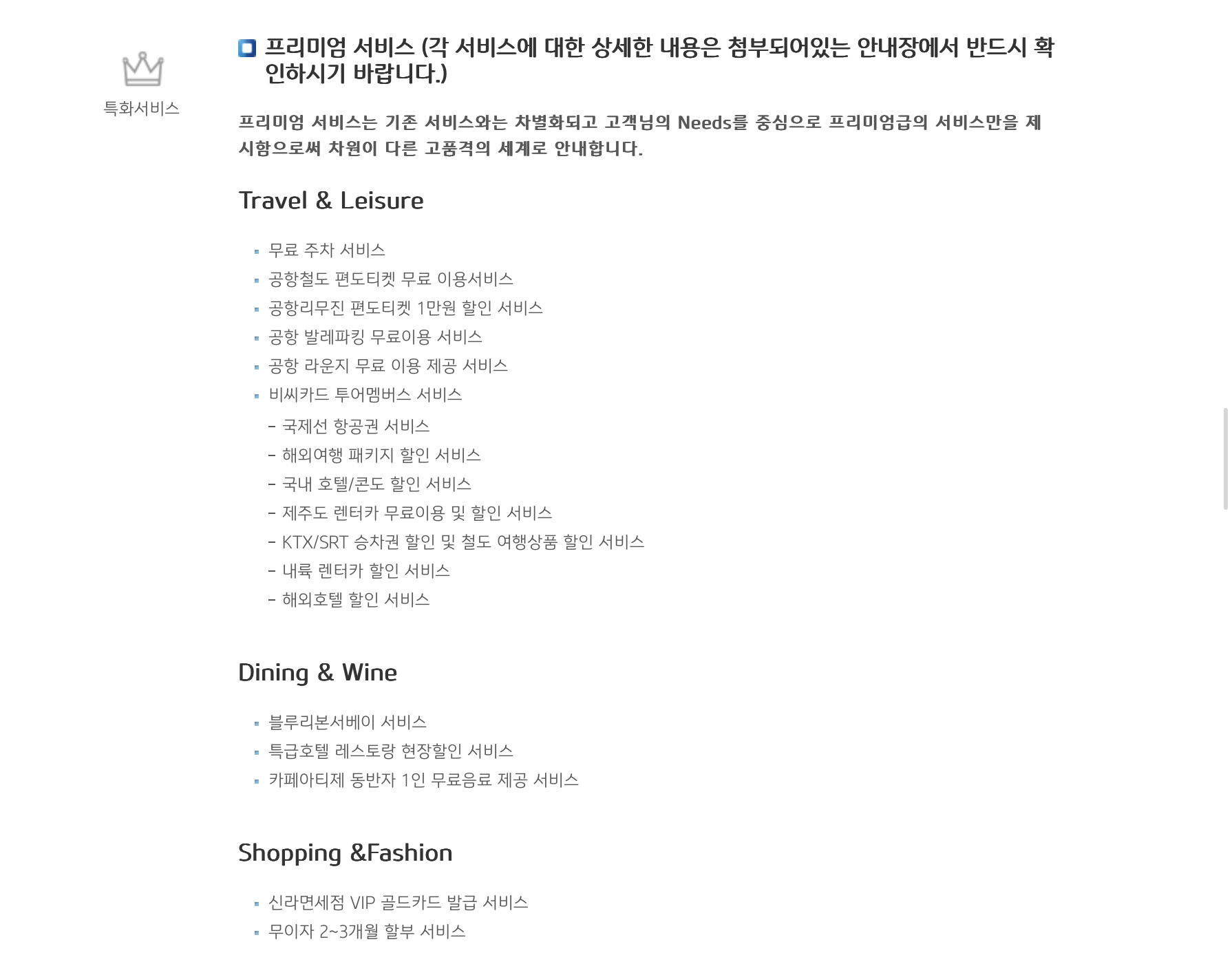 전월실적 30만원 달성 시 제공되는 프리미엄 서비스