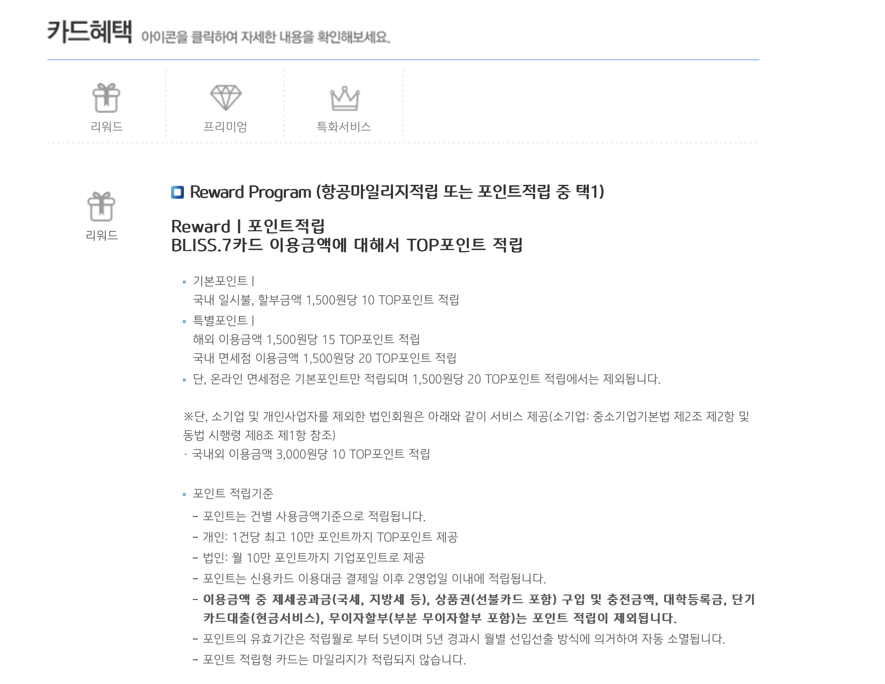 기업은행 블리스7 카드는 visa 시그니처 브랜드로 발급되고 연회비는 20만원 입니다.