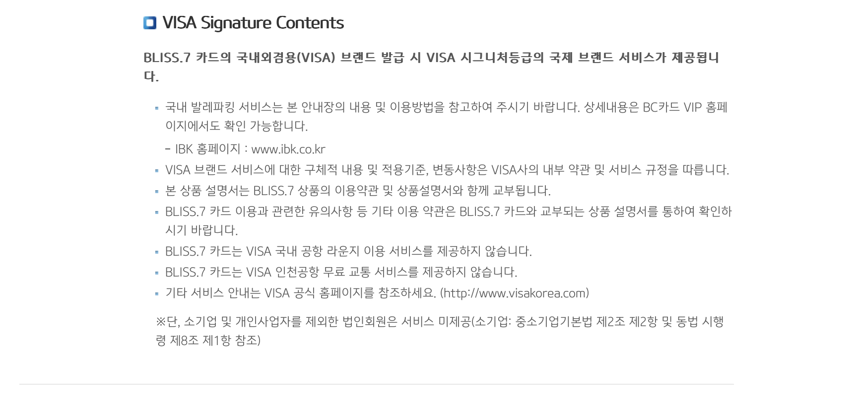 기업은행에서 발급할 수 있는 Visa Signature 플래티늄 신용카드 BLISS.7