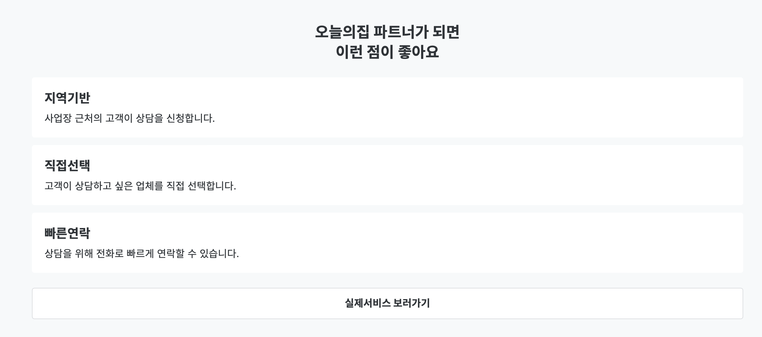 오늘의집 업체 사장님들이 고객님이 신청한 상담 내용을 확인하여 고객과 소통할 수 있는 사장님 전용 서비스입니다.