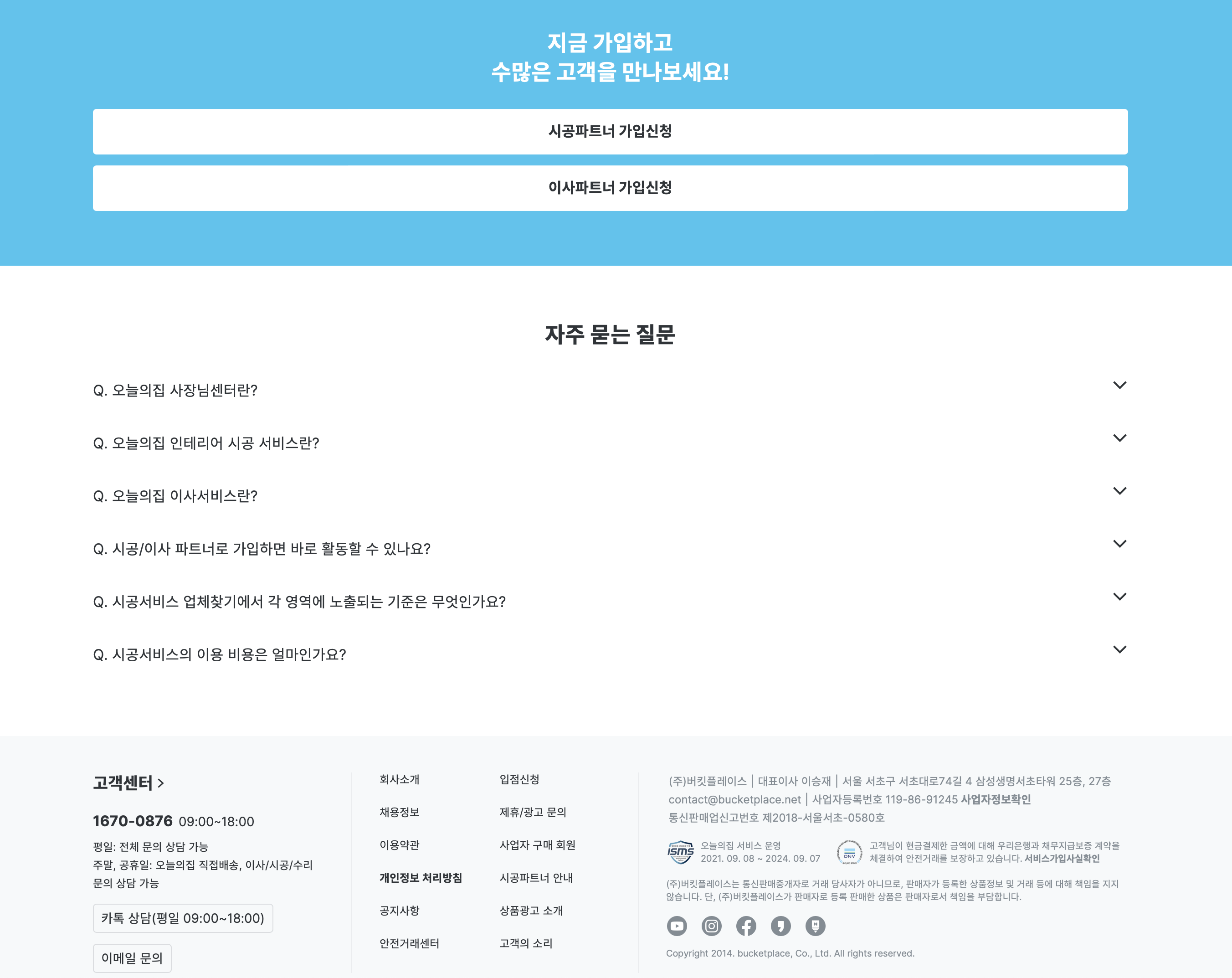 인테리어시공 서비스 가입 및 일반 영역 노출은 무료로 이용 가능합니다.
