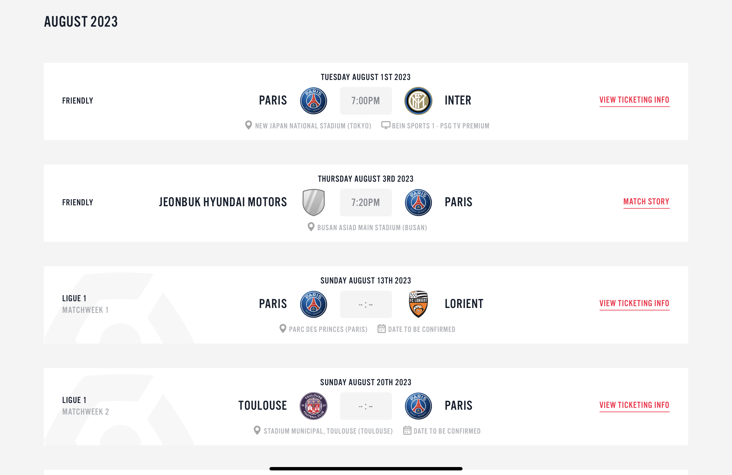 파리생제르망 공식 일정 - https://en.psg.fr/teams/first-team/fixtures-and-results