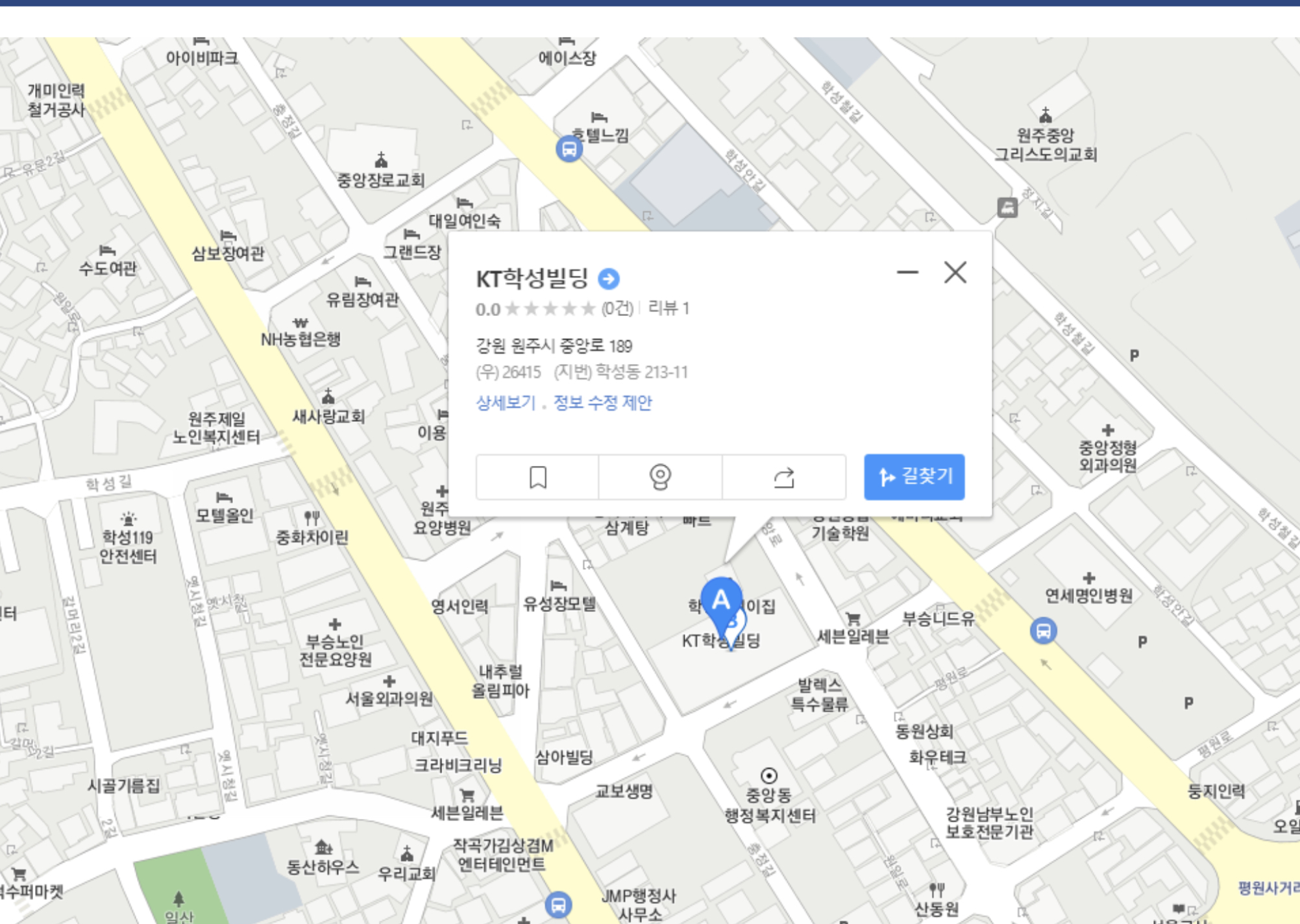 강원도 원주시 중앙로 189 (학성동) KT학성빌딩 2층 (중앙동 행정복지센터 인근)