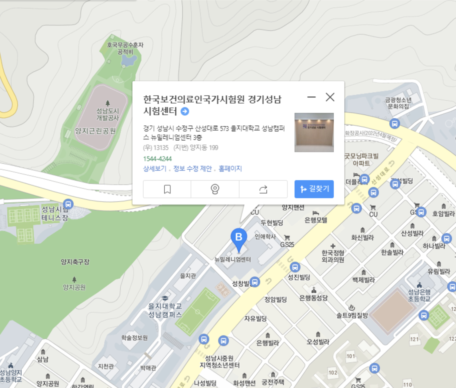 경기도 성남시 수정구 산성대로 573 (양지동) 을지대학교 성남캠퍼스 뉴밀레니엄센터 3층