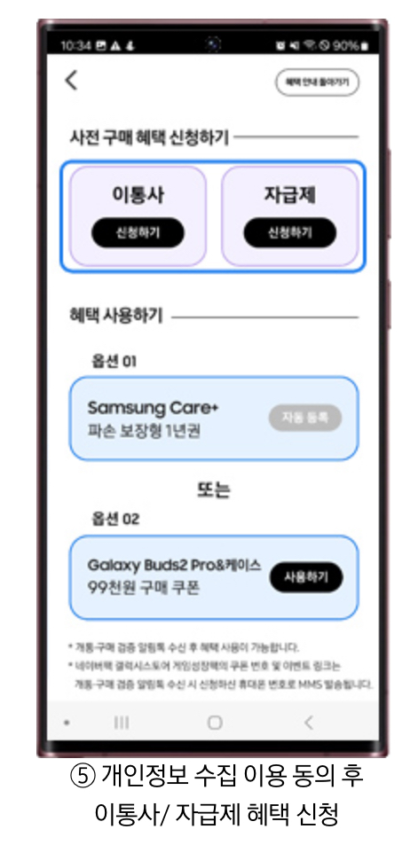 3. 우측 상단 메뉴 -> 모바일 -> Galaxy 구매혜택 신청하기 -> Galaxy S24 Series 구매혜택신청하기 -> 사전구매혜택신청