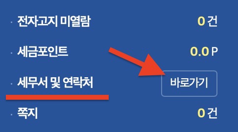 그러면 내 아이디 정보가 화면 왼쪽에 나오는데요, 여기서 세무서 및 연락처 바로가기를 눌러주세요.
