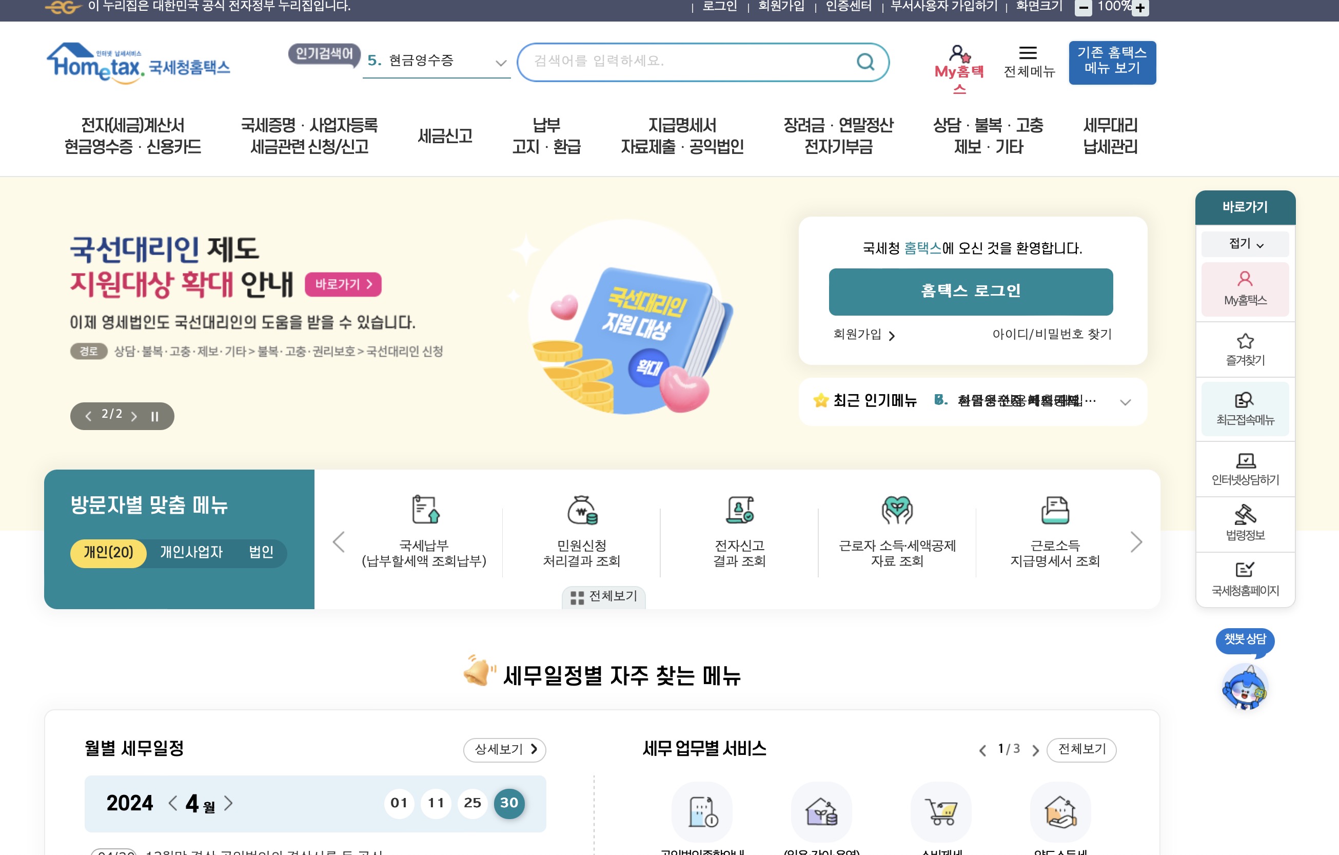 사업자회원 아이디로 전환한 뒤 My홈택스페이지로 이동합니다.
