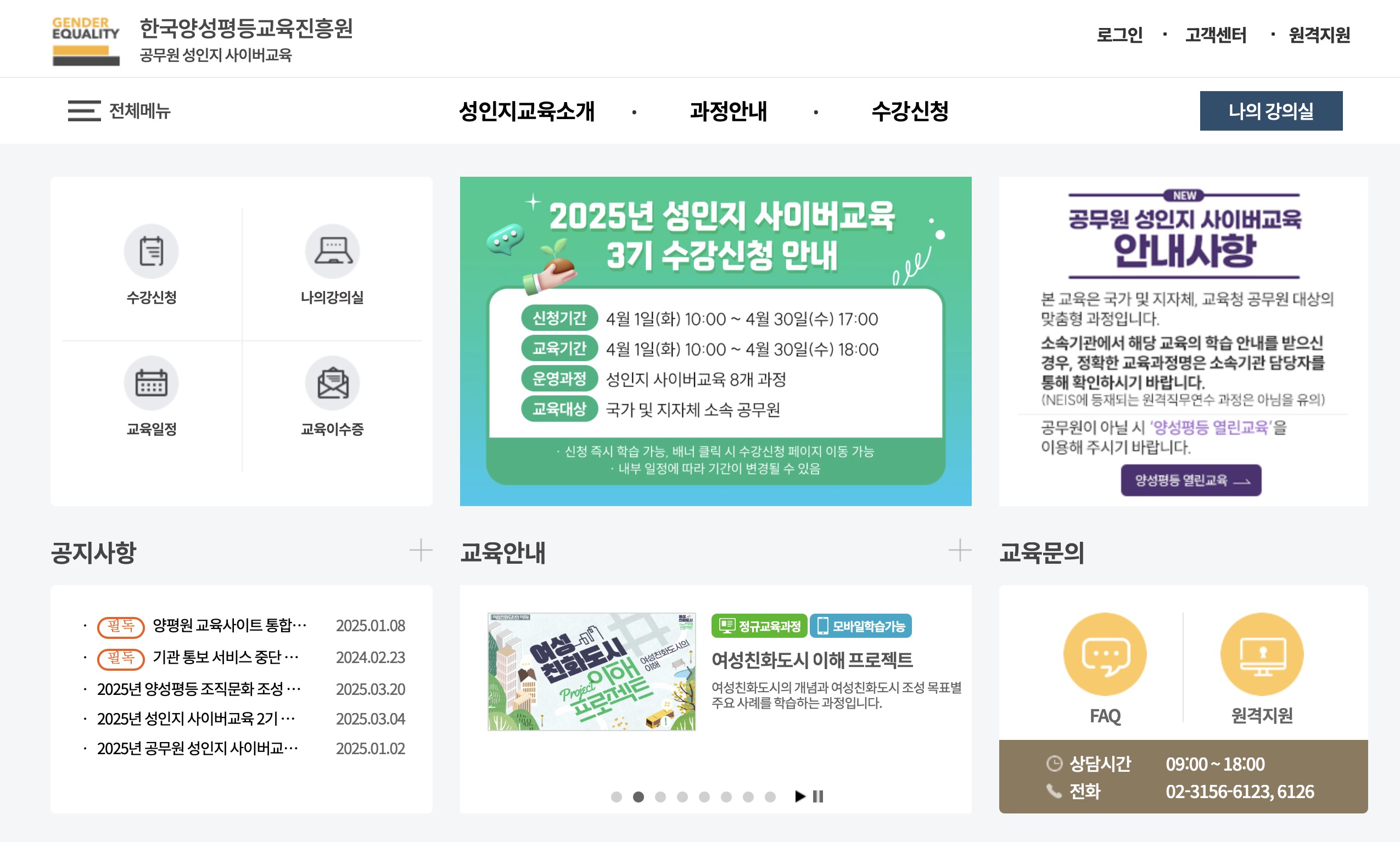 2025년 성인지 사이버교육 수강신청 안내 및 관련 사항을 참고하세요.