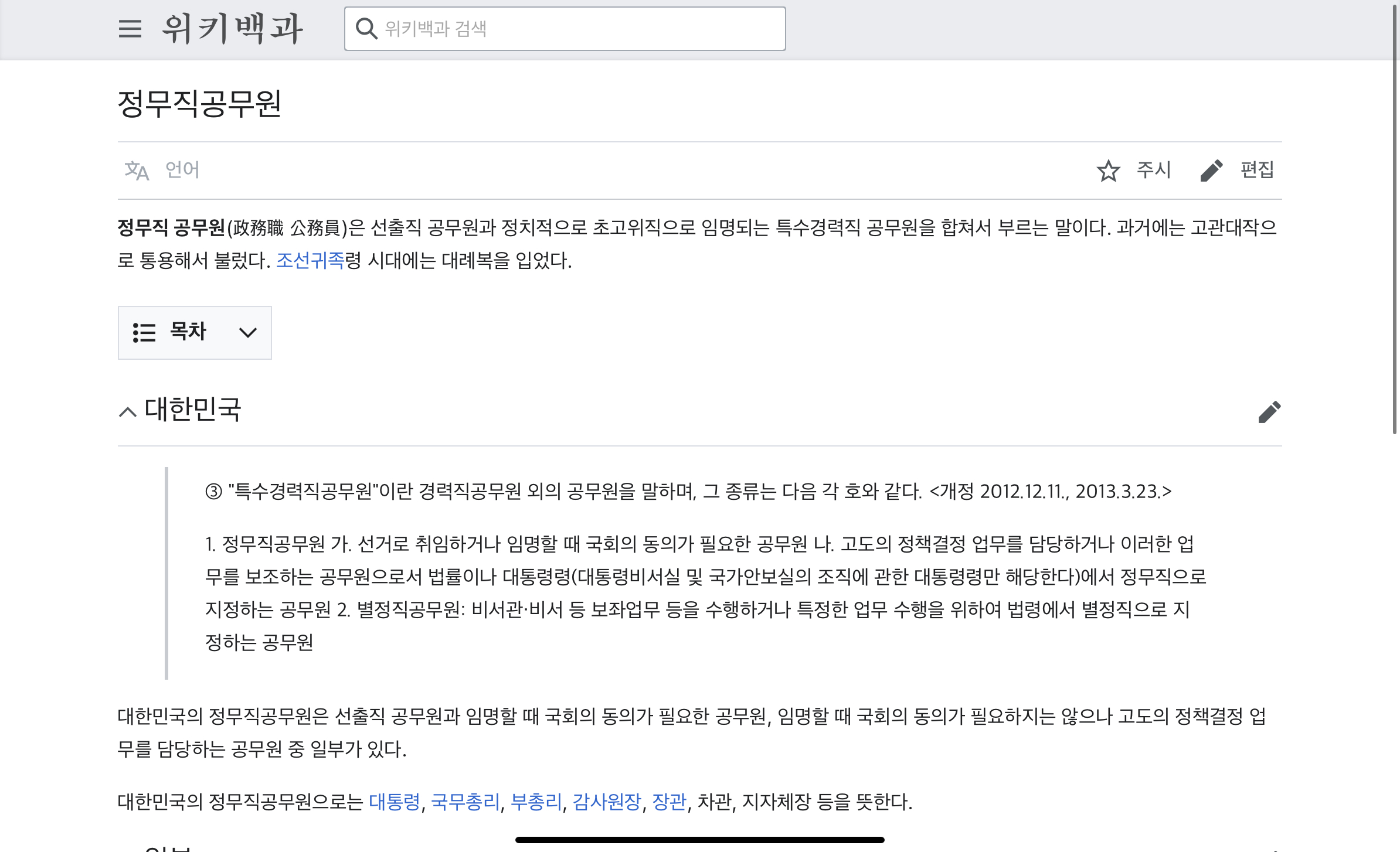 여기서 정부직공무원이라는건 정치적으로 초고위직으로 임명되는 특수경력직 공무원으로 조선시대 고관대작이라 부르는 그거라고 생각하면 되겠다.